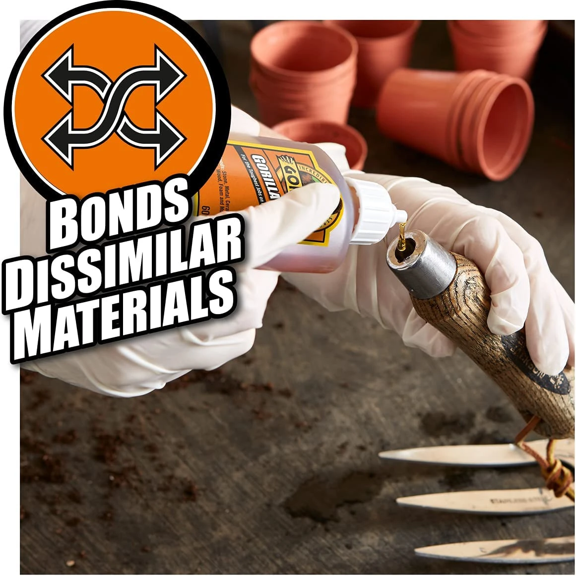 L’Original Gorilla Glue est une colle 100% imperméable et résistante aux températures extrêmes. Elle est réputée pour sa polyvalence et sa force incroyable. Sa formule de polyuréthane s’active par l’humidité. Elle se dilate à l’intérieur des matériaux pour créer une adhérence durable et parfaitement étanche. Elle permet de coller différents matériaux, ce qui signifie qu’elle peut être utilisée pour une grande variété de travaux, à l’intérieur comme à l’extérieur : pierre, métal, céramique, verre, bois, mousse et bien plus encore !