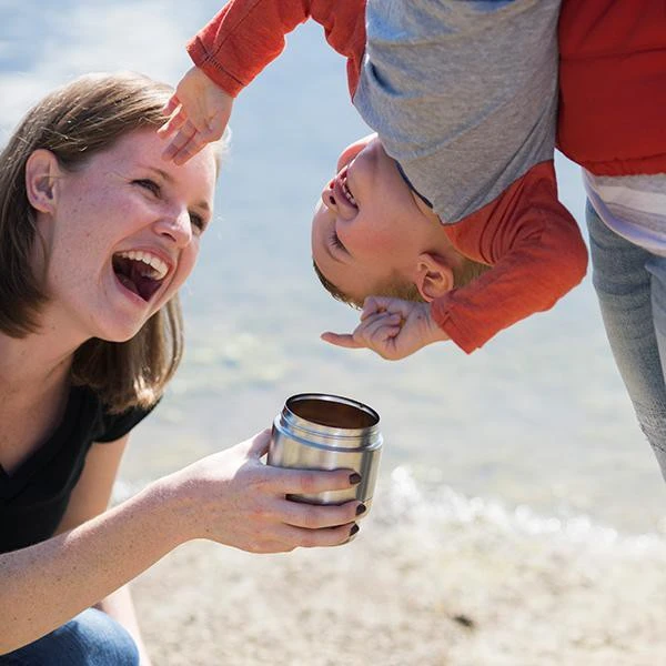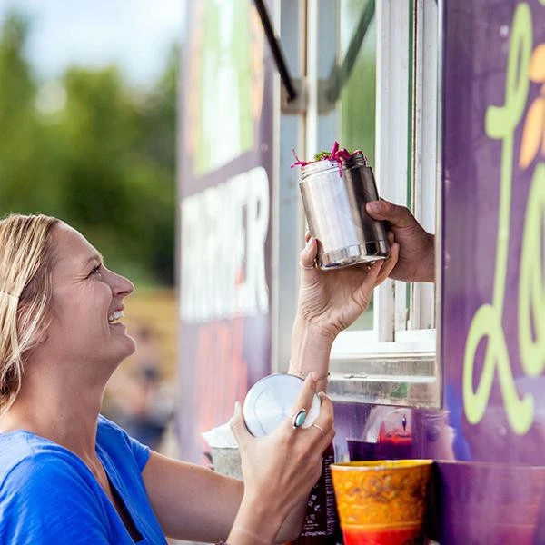 Boite alimentaire isotherme à double paroi fabriquée en acier inoxydable.