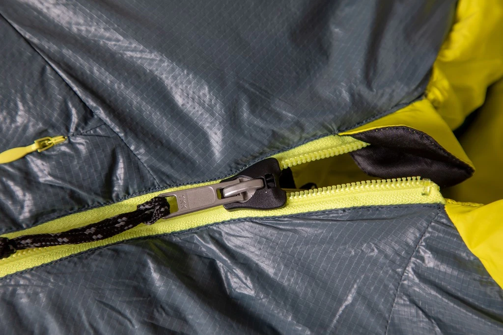 Sac de couchage sarcophage 4°C en duvet de canard 800 cuin hydrophobe équipé d’ouvertures régulant la température. Modèle homme.