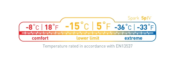 Sac de couchage ultraléger en duvet d’oie offrant une température confort de -8°C pour un poids total de 880g en taille R.